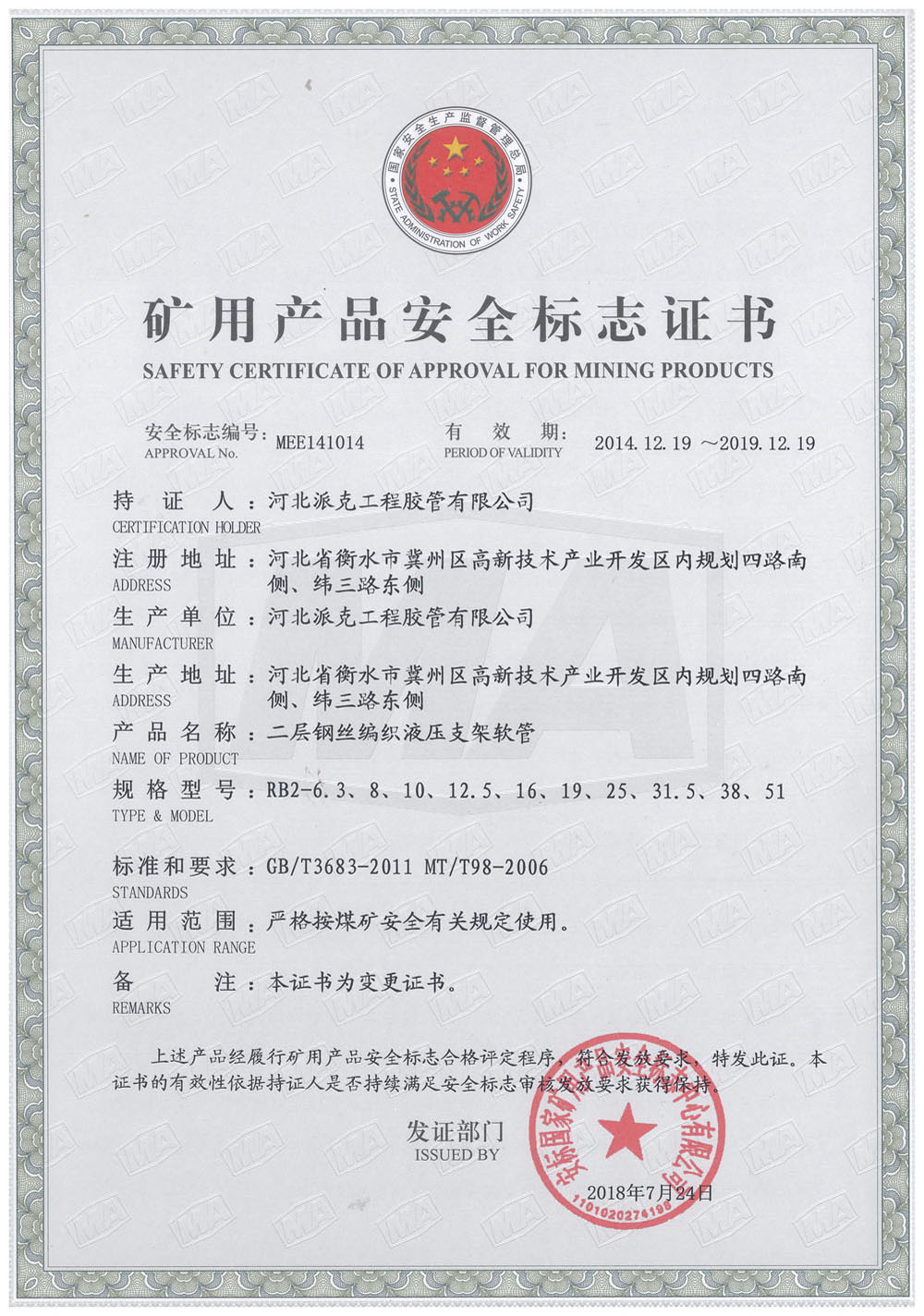 河北派克工程膠管有限公司——資質(zhì)榮譽